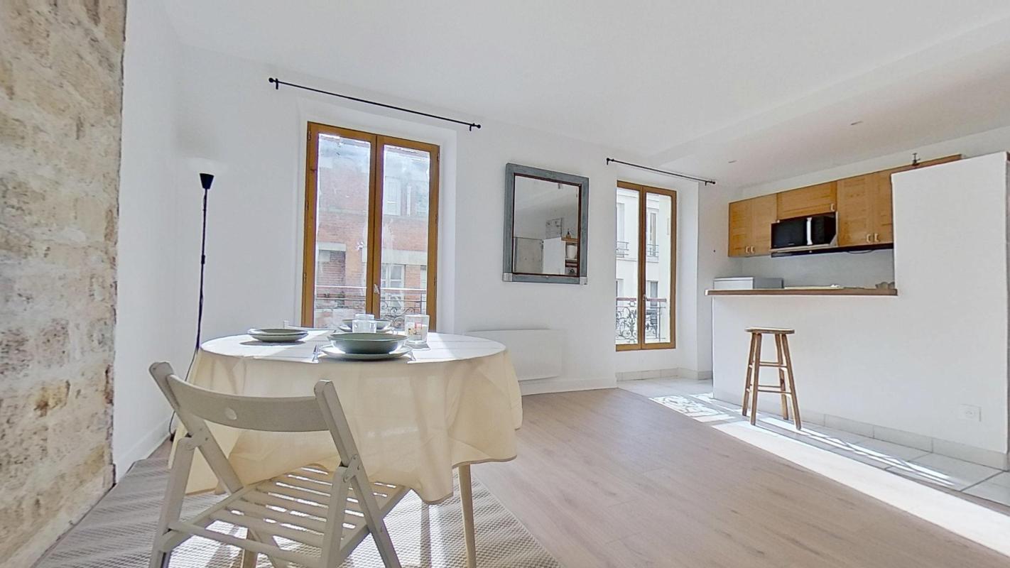 Cet appartement fonctionnel et lumineux séduit par son charme parisien avec mur en pierre apparente, ses volumes optimisés et son agréable pièce de vie baignée de lumière naturelle.