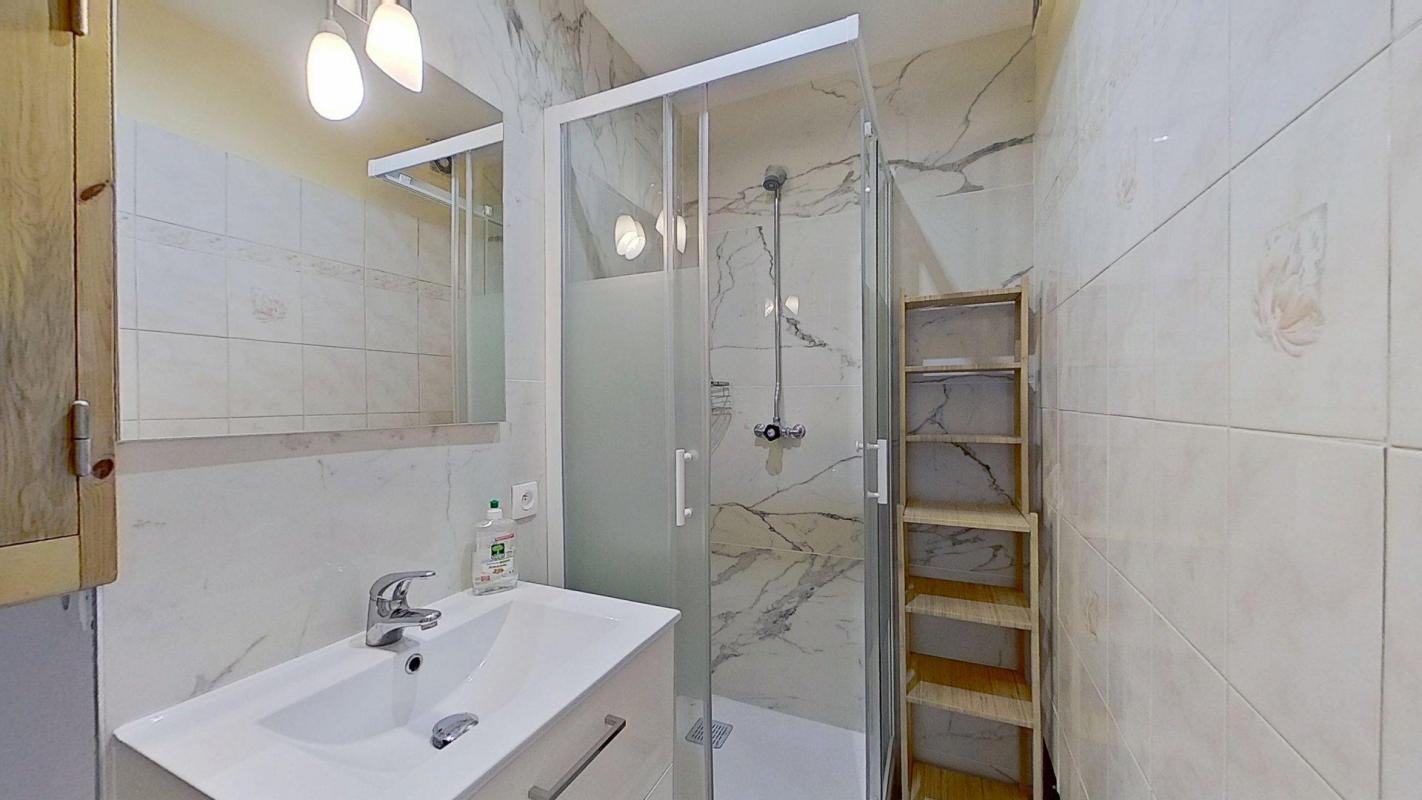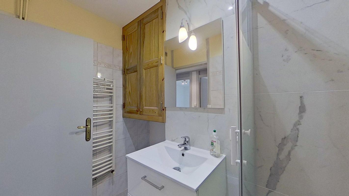 👉 Une salle de bain récemment rénovée, fonctionnelle et moderne, avec plusieurs espaces de rangement