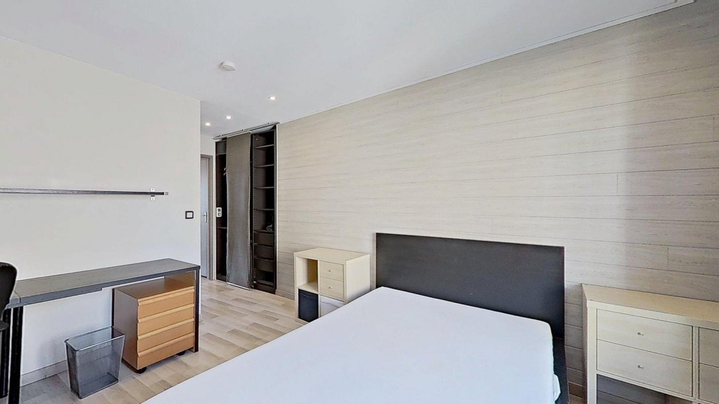 👉 La chambre, spacieuse et parfaitement aménagée, dispose d’un lit double, de tables de chevet, d’un grand dressing ainsi que d’un bureau — un véritable atout pour les étudiants comme les professionnels en télétravail.