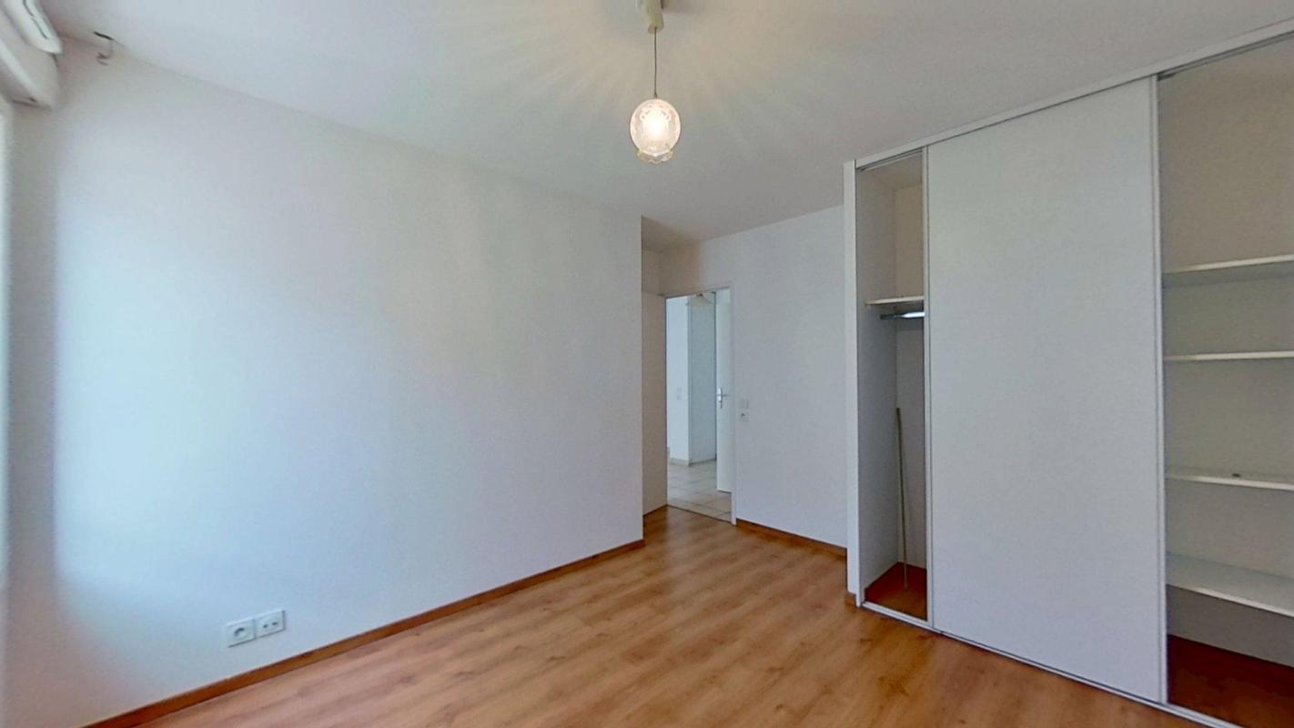 – Une belle chambre avec parquet et un dressing mural
