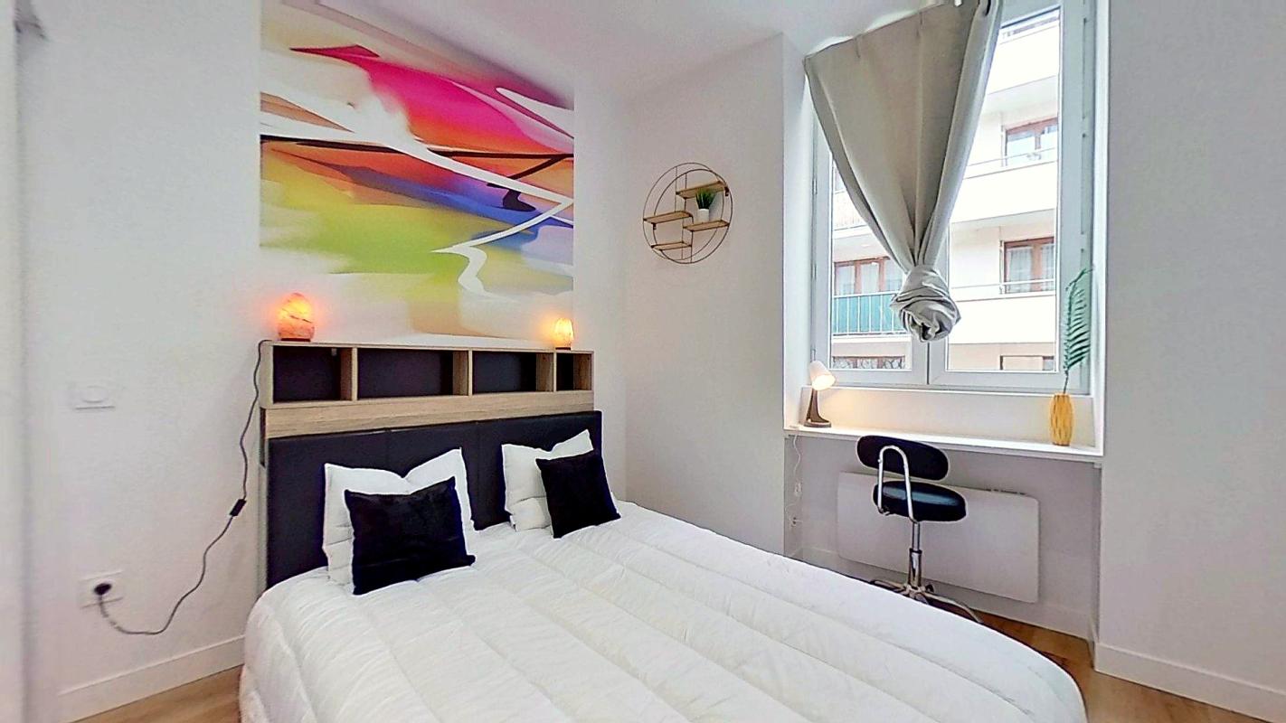 – Une seconde chambre, aux prestations similaires, comprend également un lit double, un bureau et un placard intégré. Elle offre un espace nuit tout aussi agréable, idéal pour une colocation ou pour un couple souhaitant bénéficier d’une pièce supplémentaire (bureau, chambre d’amis…).