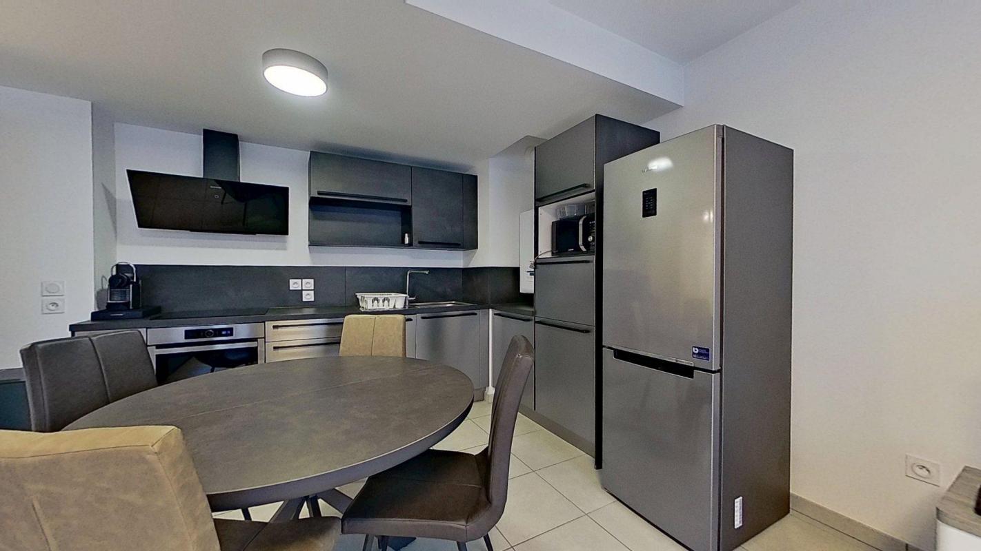 👉 Une cuisine entièrement équipée avec un four, un micro-onde, un lave-vaisselle et un réfrigérateur-congélateur