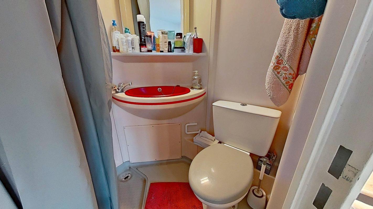 👉 Une salle d’eau séparée, équipée d’une douche et de toilettes, complète le logement.