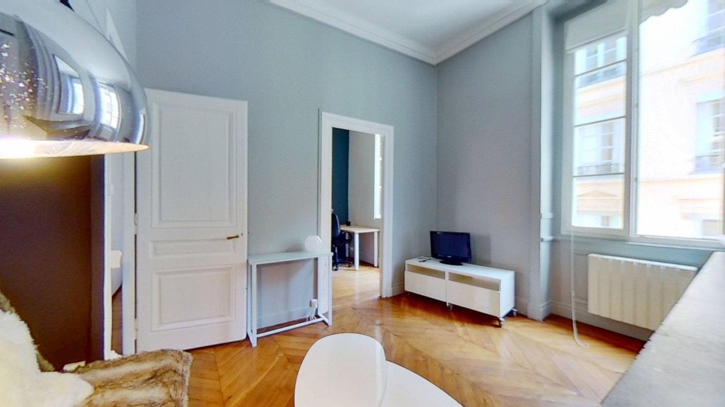 Plusse vous propose un appartement meublé dans un immeuble type haussmannien de 37m2 situé dans le quartier très prisé d’Ampère au coeur de la Presqu’île.