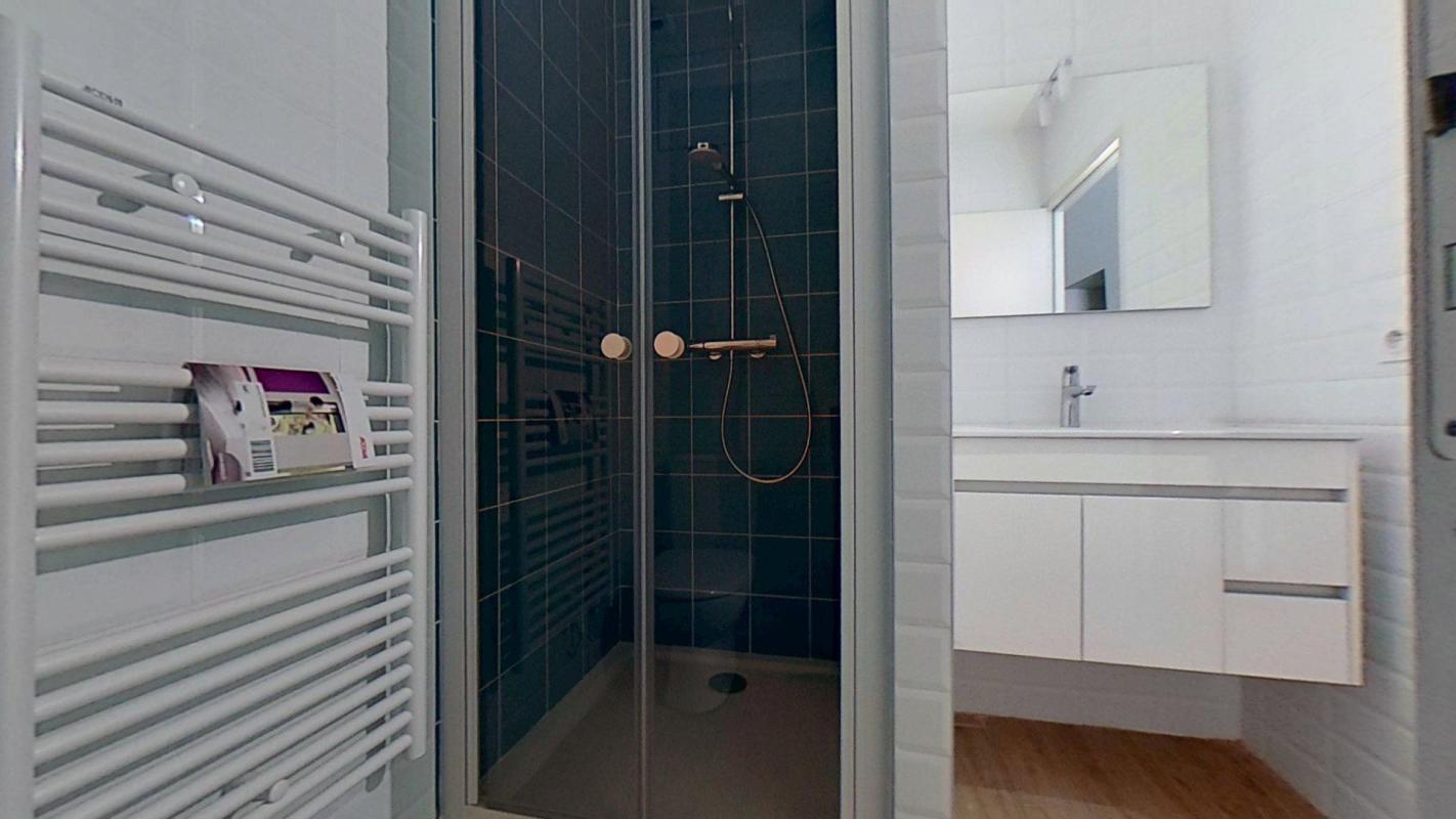 – Une salle de douche neuve et moderne.