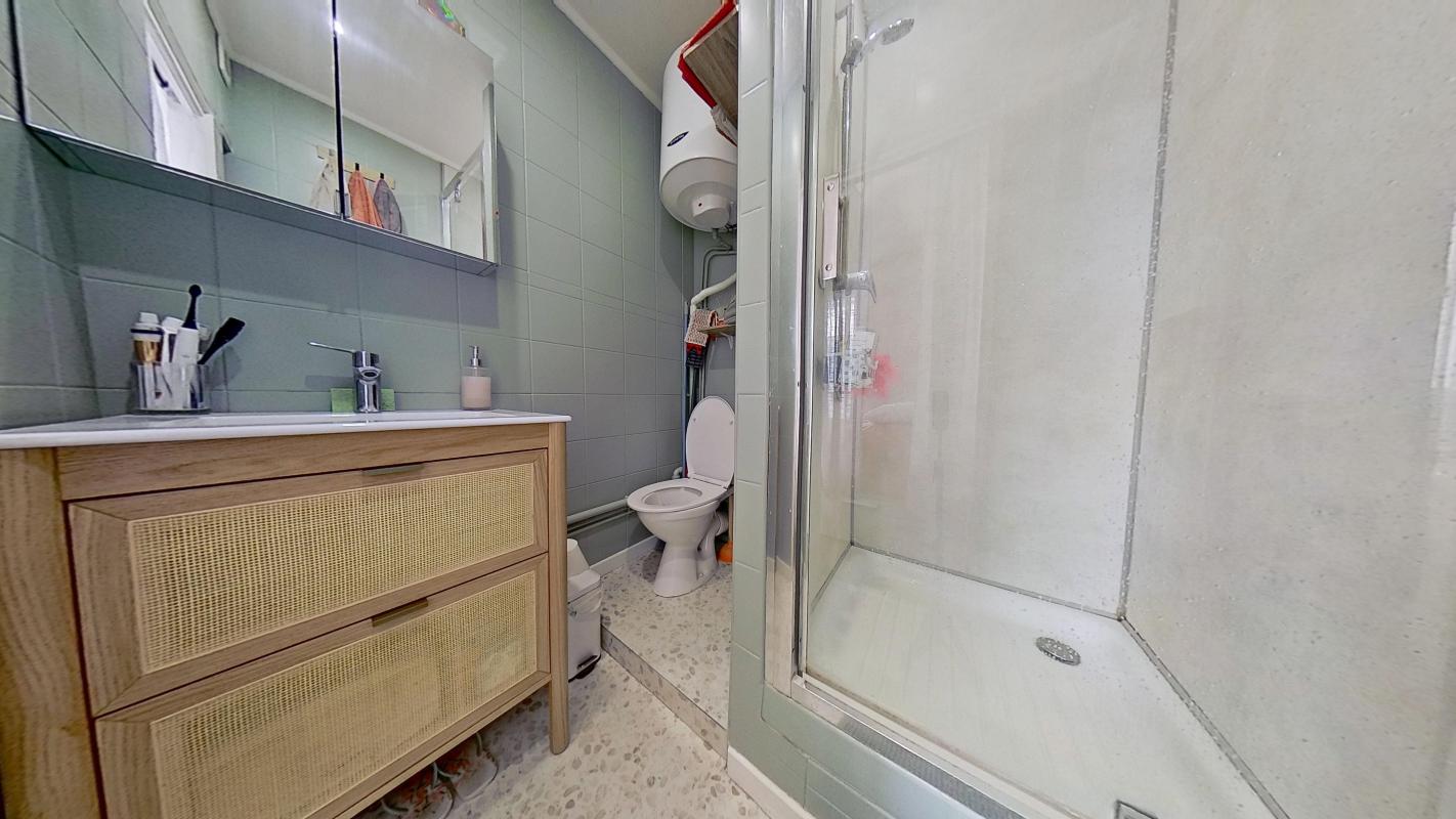 – Une salle d’eau avec douche, meuble vasque et WC