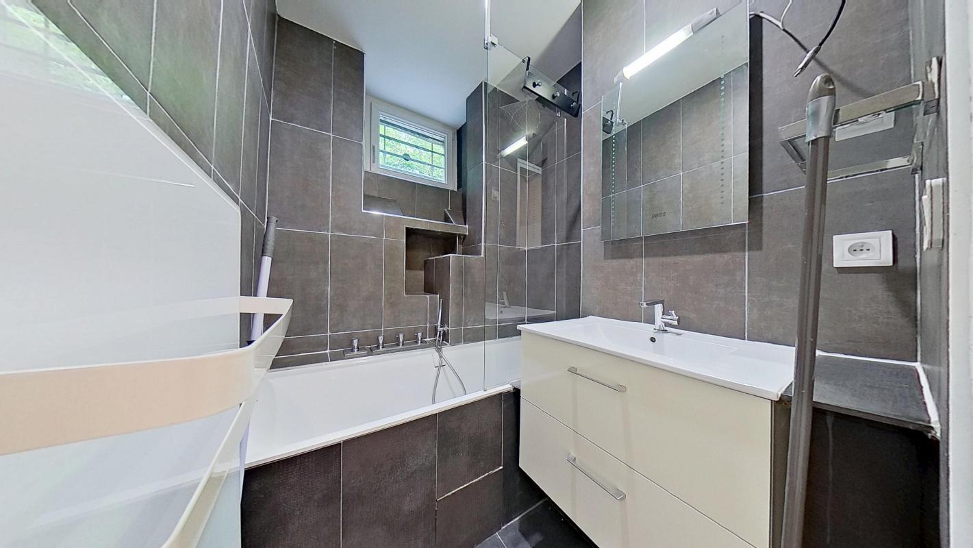 La salle de bain est équipée d’une baignoire, idéale pour se relaxer après une journée bien remplie.